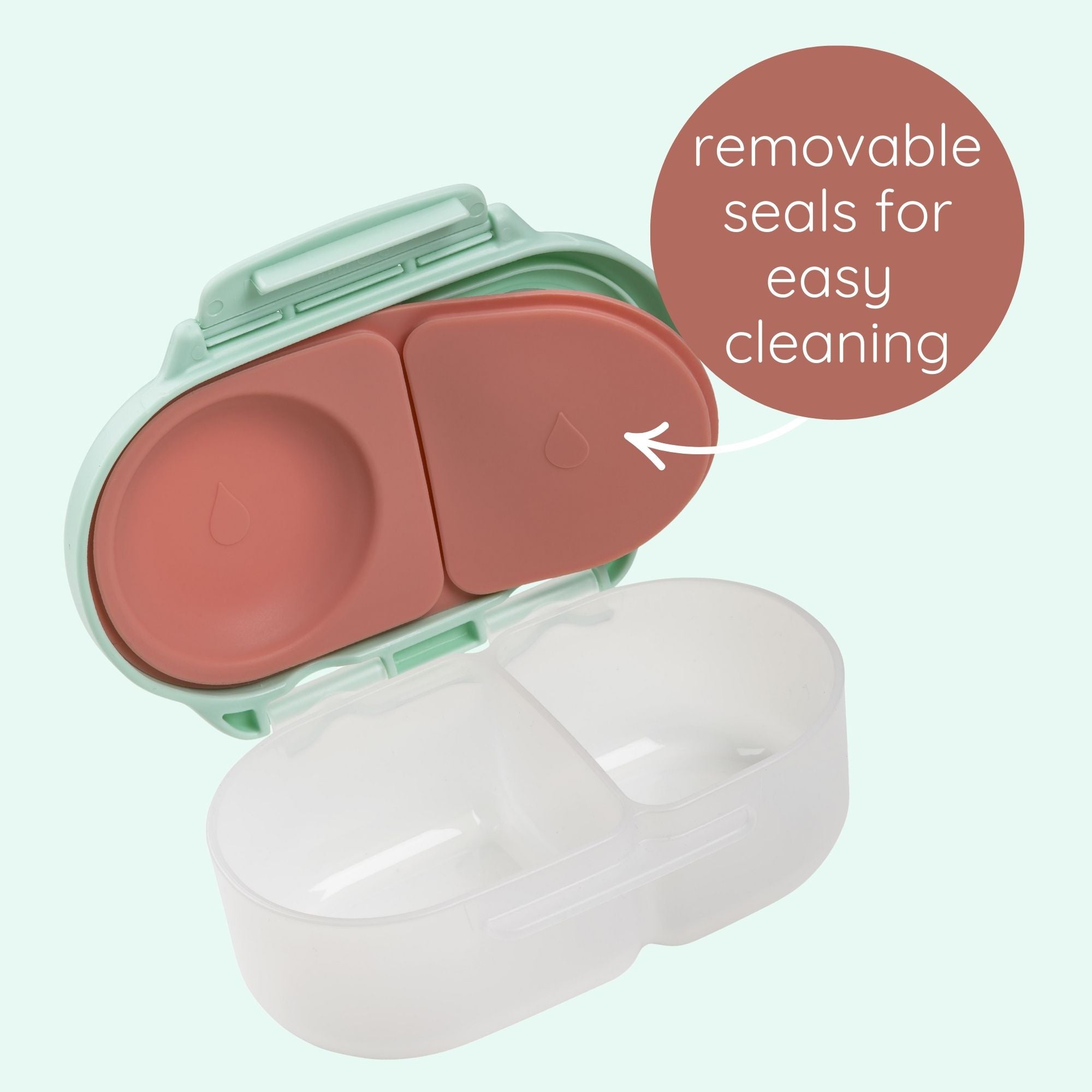 On-the-go? We’re making snack time easy with the versatile snack box. The perfect answer for smaller portions, keep little ones fed no matter what your day has in store – playground, car trips or kinder. The flexi whole fruit holder secures small, whole fruits in place, meaning no more cut fruit or soggy, bruised snacks! 2 sealed compartments are leak proof so wet snack ideas such as puree, yoghurt and dips can be packed with peace of mind. An easy open/close clip is large enough for little hands and fingers and the seals are removable for easy, hygienic cleaning.