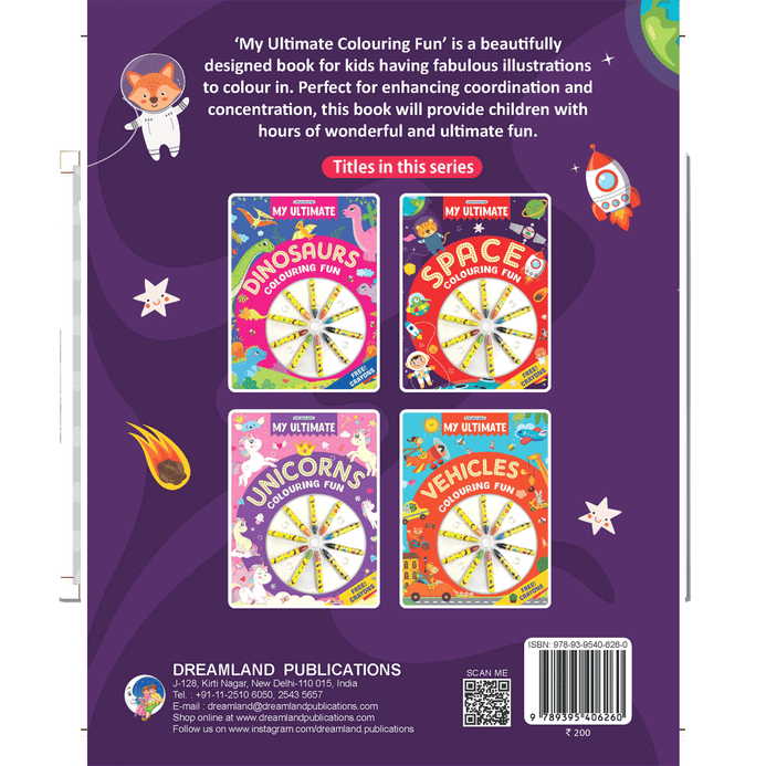 Ultimate Colouring Book- Space' is a beautifully designed book for kids having fabulous illustrations to colour in. Perfect for enhancing coordination, this book will provide children with hours of wonderfu and ultimate fun.