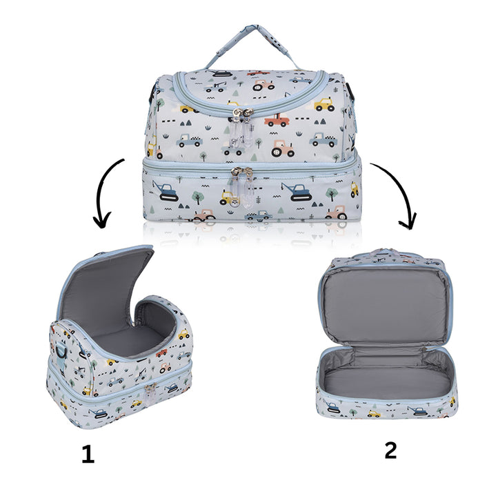 It comes in fun, eye-catching designs kids will love! The bag is  waterproof with easy-to-clean fabric for those inevitable spills.