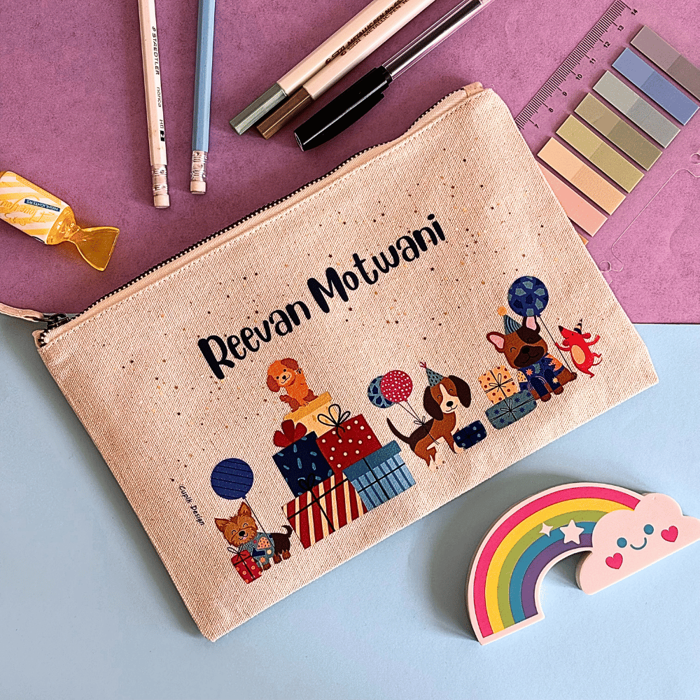 Discover the perfect school accessory for your kid – a personalized pouch that's as adorable as it is eco-friendly! Crafted from sustainable materials, it boasts charming designs and a travel-friendly size ideal for little ones. Customizable themes ensure it perfectly matches your child's style, while its soft yet durable fabric keeps school essentials safe. Sized just right to slip into their bags, this pouch is a must-have for every young scholar, adding a touch of fun and functionality to their daily routine.