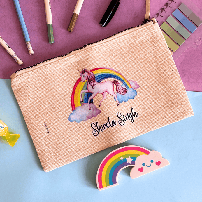 Discover the perfect school accessory for your kid – a personalized pouch that's as adorable as it is eco-friendly! Crafted from sustainable materials, it boasts charming designs and a travel-friendly size ideal for little ones. Customizable themes ensure it perfectly matches your child's style, while its soft yet durable fabric keeps school essentials safe. Sized just right to slip into their bags, this pouch is a must-have for every young scholar, adding a touch of fun and functionality to their daily routine.
