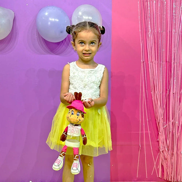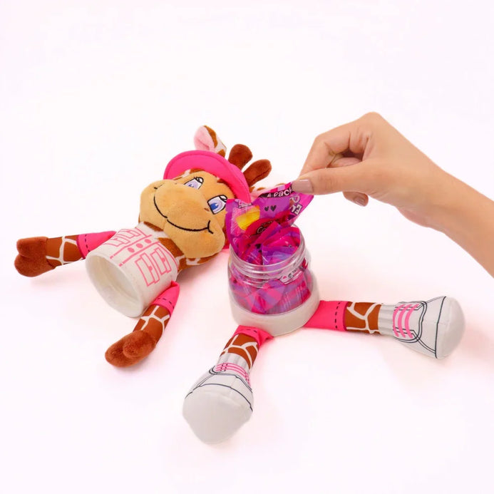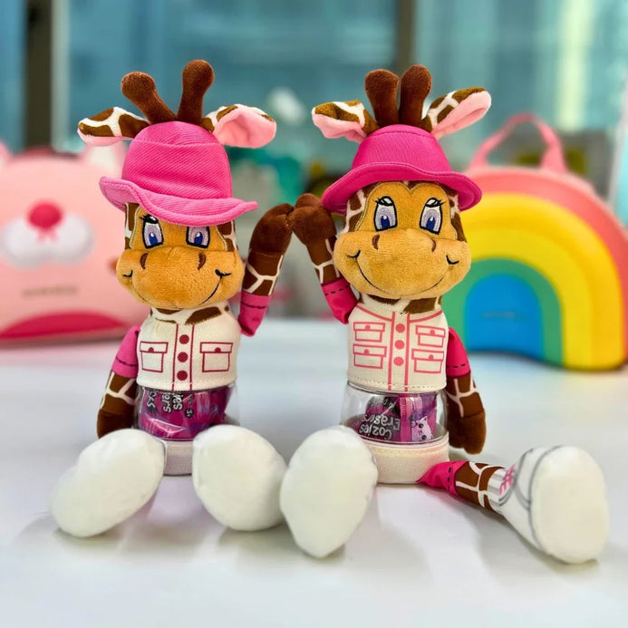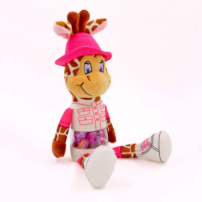 - Design - In a cute pink hat, sneakers and buttoned blazer, Giraffe Cozy looks like a super cute little gentleman. He has big bold eyes, coated horns and a big smile, ready to spread happiness everywhere.