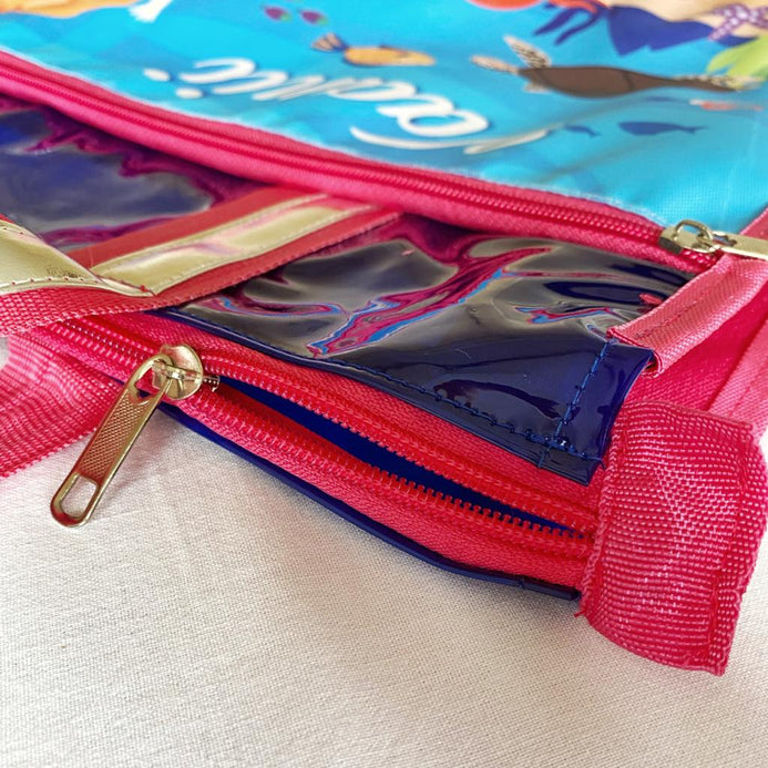 Tote bags for kids in bright colours and gorgeous prints. Perfect for the playground, the beach, swim class or the art centre. Comes with a zipper to keep your belongings secure. Also has a smaller section in the front to store wet swimwear, wet art material or anything else. Popular for return gifts too...just club with our gorgeous matching sketch books and crayon boxes and you have a memorable giveaway for your special event.