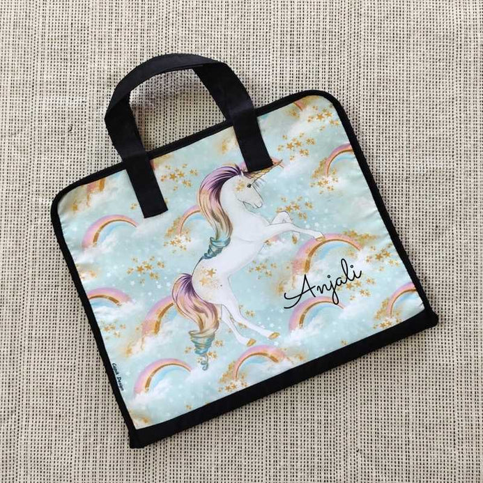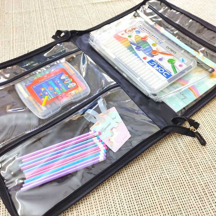 Our personalized art folios are the ideal gift for artists of any age. With large see-through sections for storing sketch books, art sheets and an assortment of art materials, this is one compact art storage folio that'll keep all your goodies in one place. Handles on top allow you to carry it around like a tote so you get to be creative on the go! Available in 5 gorgeous personalised covers, and with all-black interiors that makes your art stuff pop.
