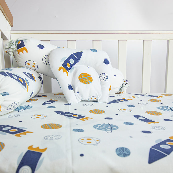 Soft, breathable & natural, Yellow Doodle Organic Cotton Bedsheet Set will encourage sweet zzZs for your little munchkin. This cot bed gift hamper includes a sheet, pillow and a pair of bolsters which are made from the finest certified organic cotton & is more durable and gentler on your baby’s tender skin. This bedding set is made from 100% GOTS certified premium organic cotton to create a smooth and soft finish and is also carefully crafted without harmful chemicals. Sized to fit standard crib and toddler mattresses, your baby will enjoy the softness of 100% premium organic cotton, so you both rest easy!