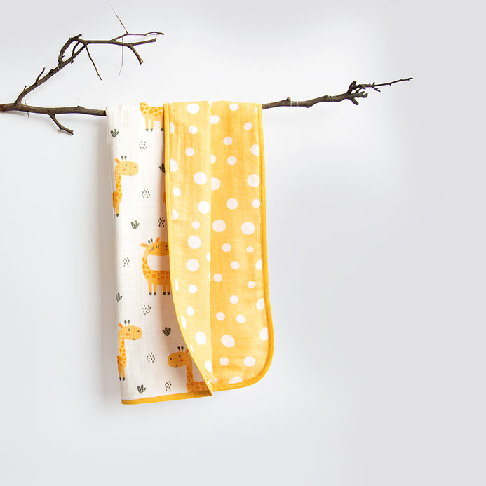 The Yellow Doodle must- have baby essentials gift basket features an array of iconic prints in our classic muslin- the softest & purest fabric for a newborn. This six piece gift hamper includes everything you'll need to coordinate an adorable, cheerful look that your little one will love! This luxury welcome baby gift basket includes- Adorable cotton storage basket- 1, Oh-So-Soft Muslin Blanket- 1, Organic Luxury Swaddle- 1, Doodle Baby Bib- 1, Doodle Burpy Cloth- 1, Organic Muslin Wipe- 1.