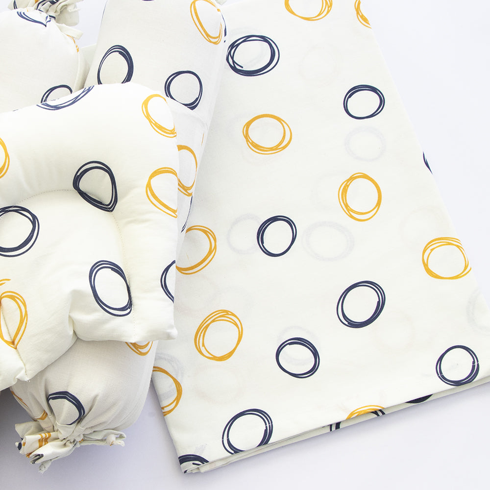 Soft, breathable & natural, Yellow Doodle Organic Cotton Bedsheet Set will encourage sweet zzZs for your little munchkin. This cot bed gift hamper includes a sheet, pillow and a pair of bolsters which are made from the finest certified organic cotton & is more durable and gentler on your baby’s tender skin. This bedding set is made from 100% GOTS certified premium organic cotton to create a smooth and soft finish and is also carefully crafted without harmful chemicals. Sized to fit standard crib and toddler mattresses, your baby will enjoy the softness of 100% premium organic cotton, so you both rest easy!
