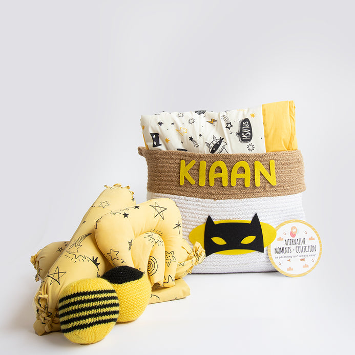 Create a nursery of your dreams with the Yellow Doodle Bedding Collection. This eight piece bedding gift hamper includes everything you'll need to have a captivating nursery for your little one! A true assortment of premium cotton-rich baby must-haves, our selection of beautifully curated baskets make the perfect gifts.