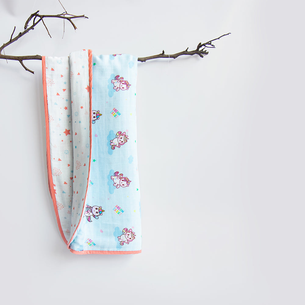 • SIZE & MAKE- 100% Organic Cotton Muslin, perfectly sized with cheerful designs; 1 Reversible Blanket- 110 x 110 cm (3 layers), 1 Swaddle- 105 x 105 cm, 1 Reversible Baby Bib- 37 cm long x 22 cm wide (3 layers), 1 Reversible Burpy Cloth- 60 cm long x 25 cm wide (3 layers), 1 Wipe- 30 x 30 cm (2 layers), 1 Small Cotton Rope Basket- 30 x 20 x 20 cm, Hypoallergenic, environment- friendly AZO free dyes. Handmade with care in India.