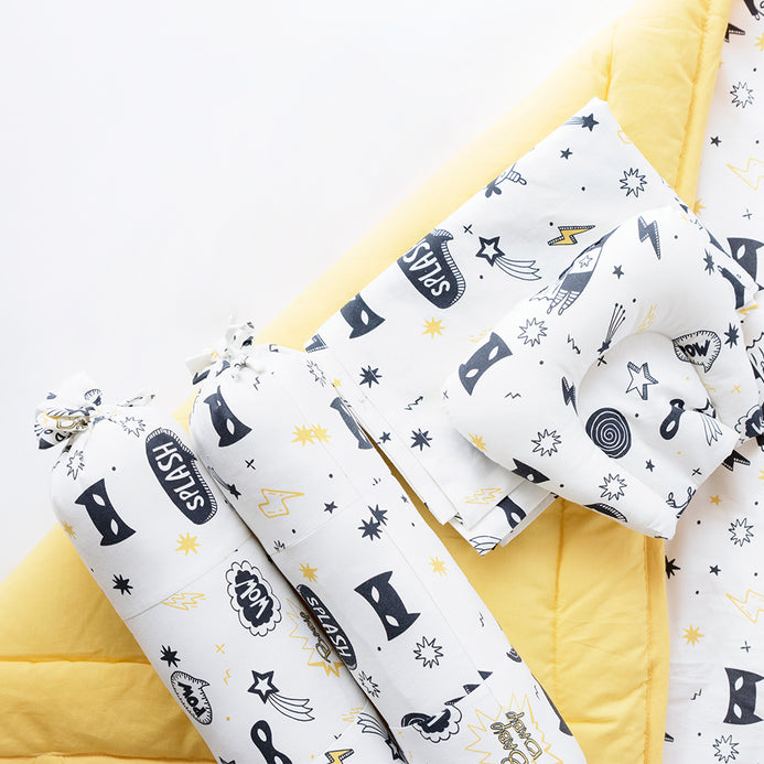 Create a nursery of your dreams with the Yellow Doodle Bedding Collection. This eight piece bedding gift hamper includes everything you'll need to have a captivating nursery for your little one! A true assortment of premium cotton-rich baby must-haves, our selection of beautifully curated baskets make the perfect gifts.