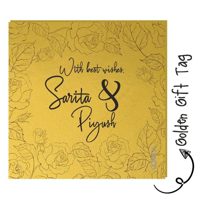 These golden mettaic tags are elegent and classy. These personalised tags are perfect for festive or any other gifting.