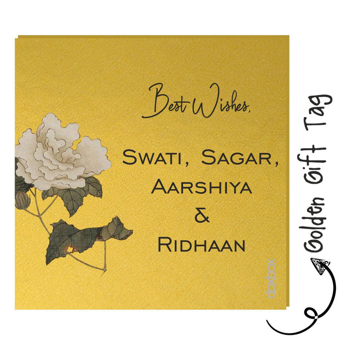 These golden mettaic tags are elegent and classy. These personalised tags are perfect for festive or any other gifting.