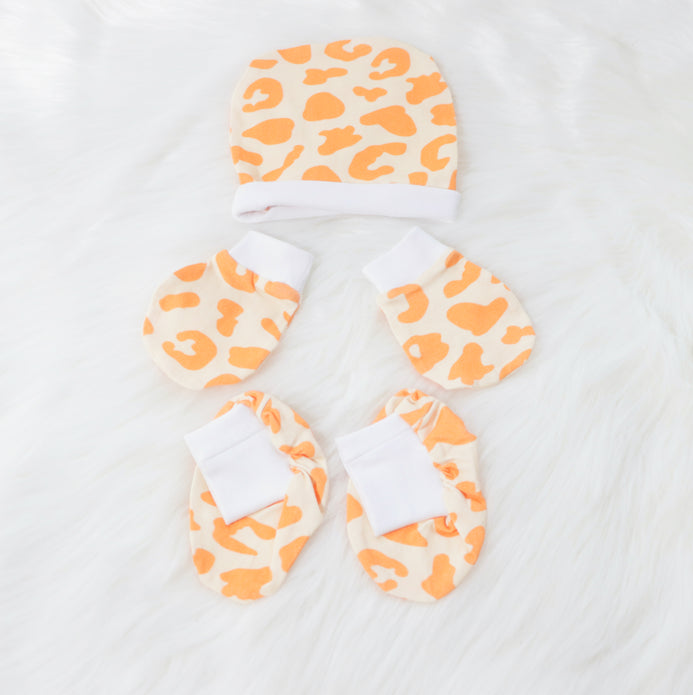• Set of 7 - 1 cotton cap, 1 pair of mittens, 1 pair of booties, 2 bodysuits.