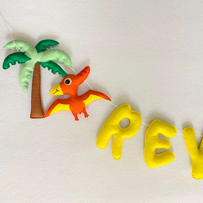 Our cute Customised felt dinosaurs themed garland immediately sets the tone to your kidàroom dïr. These can be hung across walls or on cribs or the kids shelf or kids room door. Decorated with different colourful dinosaurs & trees, this bunting can make perfect addition to the kidàroom theme.