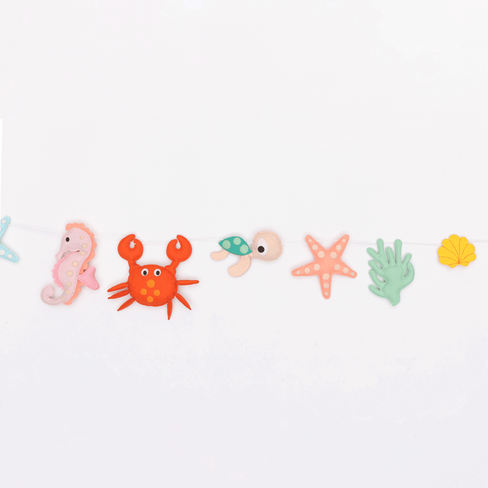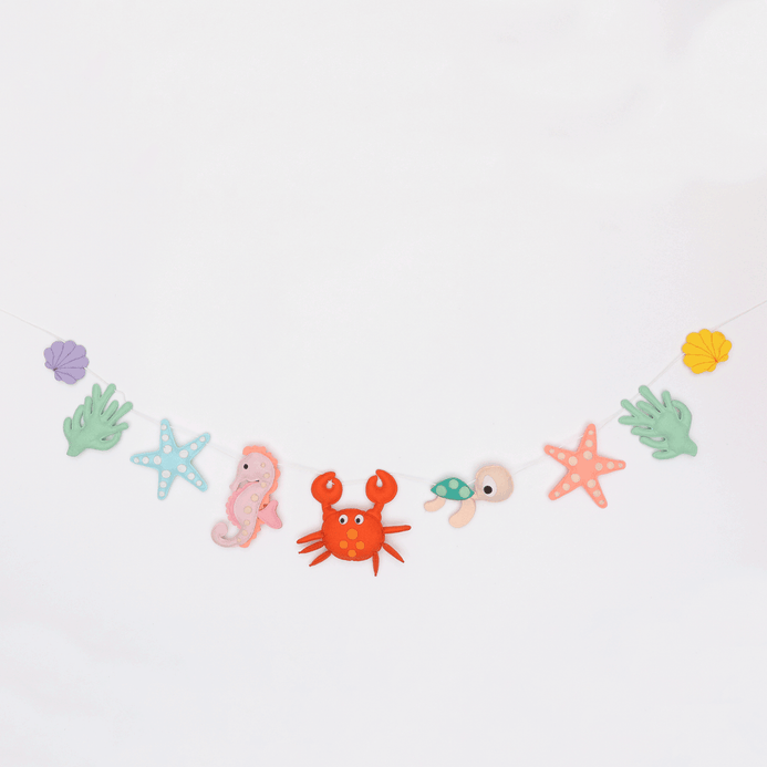 Our cute felt under water animals themed garland immediately sets the tone to your kidàroom dïr. These can be hung across walls or on cribs or the kids shelf or kids room door. Decorated with different colourful seahorse & crab, this bunting can make perfect addition to the kidàroom theme.