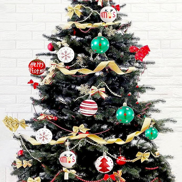 3. Size: Every ball is asorted with varied printing designs like swirls, reindeer, bells and so much more. It is suitable for decorating Christmas trees of all sizes.