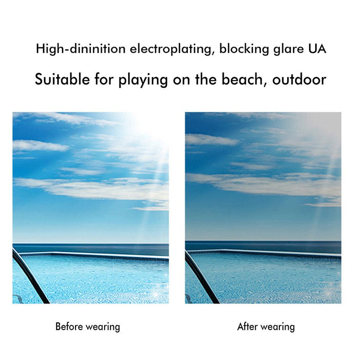- Content: This box comprises 2 pcs of glasses ,one swimming goggles and one additional frame with a hook attachment where the SUN UV frame protection could be placed in.