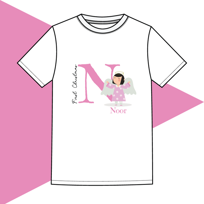 Get ready to spread the holiday cheer with our Personalised Angel Kid's Christmas T-Shirt. A perfect gift a your little angels First Christmas.