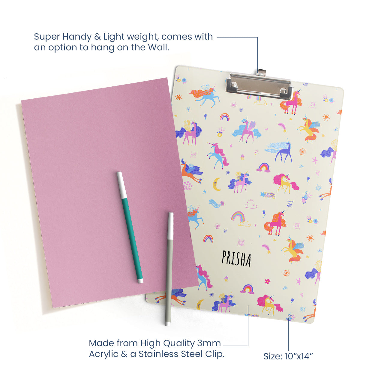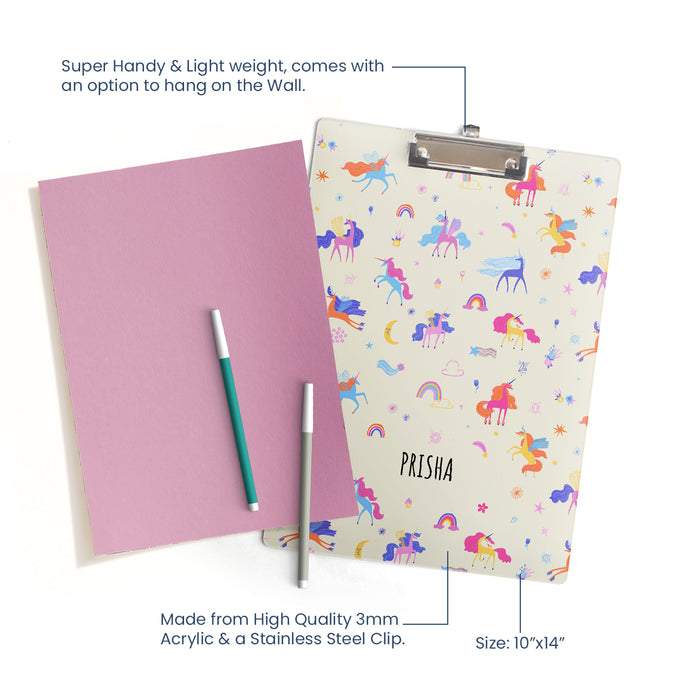 You may not realise it, but a clipboard is an irreplaceable part of school and is useful during exams, classes, drawing and other activities. So how amazing would it be to give your kid a custom clipboard of their favourite colour with personalised printed names and designs! They can carry this easy-to-store and premium quality online clipboard to school with pride. Made from high-quality 3mm acrylic, it is lightweight, comes with a stainless steel clip and can be hung on the wall. Personalize a themed clipboard with your child’s name, initials or any other text. Kids will enjoy carrying it around school/classes for homework & more. Customize this kid’s clipboard with a name for the perfect gift for birthday parties, back-to-school supplies & more.