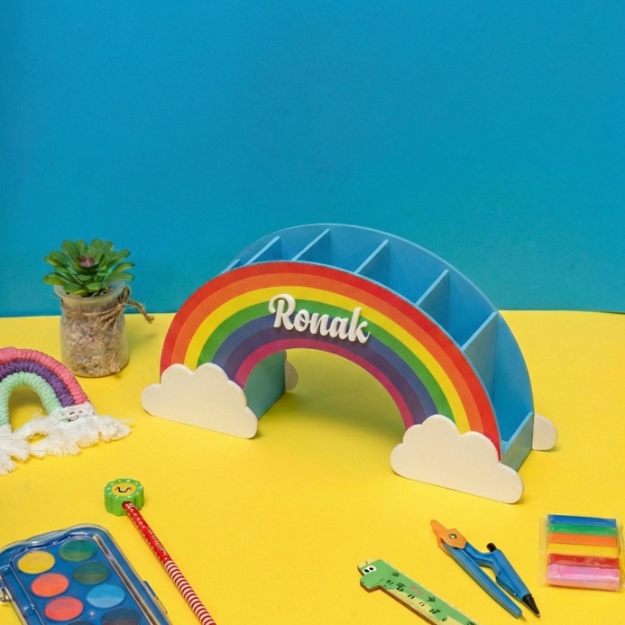 Our Rainbow Desk Organiser is vibrant and functional. It is designed with different compartments keeping in mind varied utilities to keep stationery and art supplies neatly organized. In turn keeping everything that you need within reach and freeing the desk space from clutter. They are designed with different compartments keeping in mind varied utilities. This kind of organizer can add a fun and colourful touch to your workspace while serving a practical purpose.