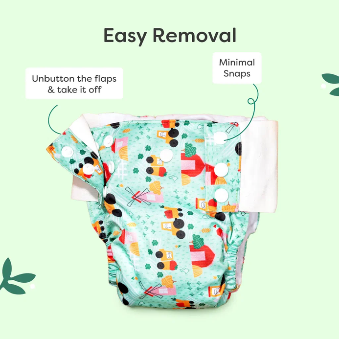 Putting them on is as easy as slipping into underwear. With these 2-in-1 pant style cotton diaper pants, you can choose between using the snap enclosures or a quick pull-up for when your baby is in the mood for running around. Let a diaper change not stop their fun and games.