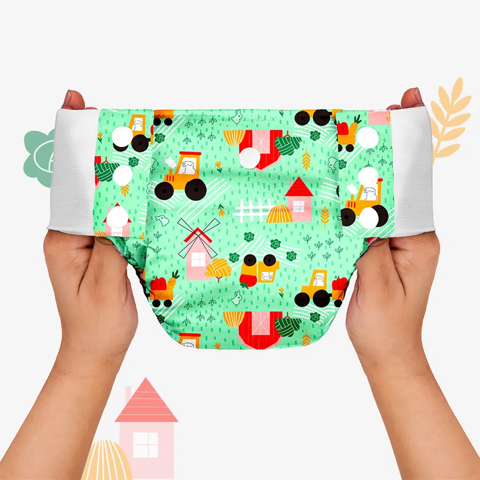 Putting them on is as easy as slipping into underwear. With these 2-in-1 pant style cotton diaper pants, you can choose between using the snap enclosures or a quick pull-up for when your baby is in the mood for running around. Let a diaper change not stop their fun and games.