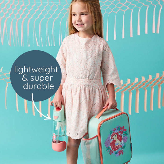 It’s Disney reimagined - dive in and get ready for the magic to begin! Made from Tritan, our unique big kids’ drink bottle is ideal for kindy and school kids. Its unique triangle shape bottle is designed specifically for little hands, making it easier for kids to grip. Easy push button pops open the lid, keeping straw tops hygienic when closed and never goes astray. Spill-proof bite valve straw top prevents accidental spills. Robust carry handle makes it easy for kids to carry and remove out of school bags. Its 600ml capacity and angled silicone straw lets kids drink to the very last drop and stay hydrated throughout the day. Minimal parts and ultra easy to assemble / disassemble and clean. Plus, customise the look with removable bumper.