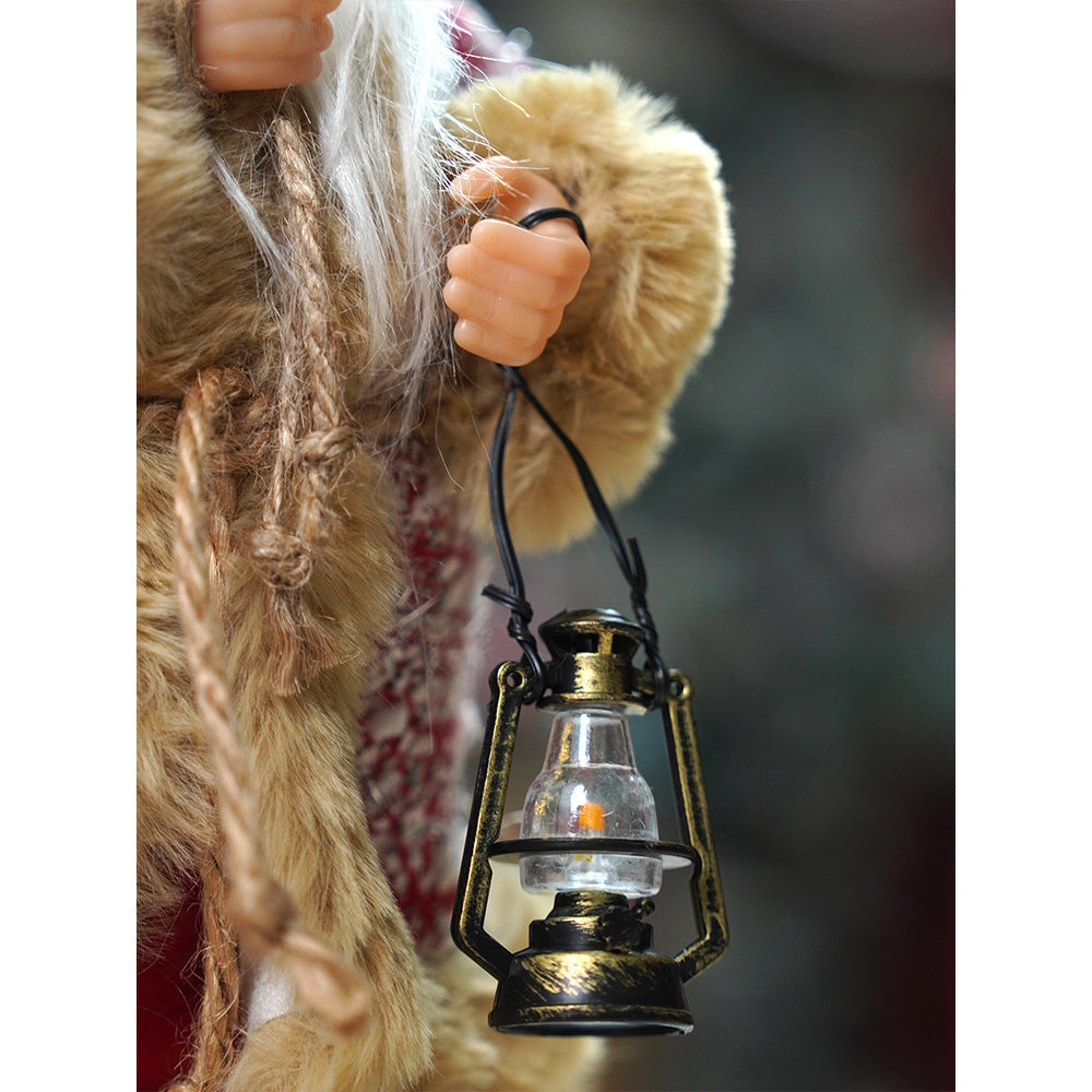 2. Detailing: Designed with plush fur fabric, rustic rope details, and detailed accessories, this Santa carries a burlap sack filled with pine branches and miniature gifts in one hand, while holding a lantern in the other, symbolizing light, joy, and festive spirit. The earthy tones and natural textures give it a handcrafted look that fits beautifully with both classic and modern Christmas décor.