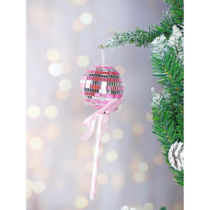 1. Set of 2 Big Size Pastel Pink Disco themed Candy shaped Ornaments: Celebrate the holiday season with this unique and beautiful pastel pink charming candyland disco themed shiny set of 2 big Size christmas tree ornaments. Each of this canyland themed ornament is unique in its own way. The baby pink and silver glitter combiantion is a perfect fit for your pink shiny glittery winterland themed christmas. This set comprises of 1pc of Big pink dsico themed candy chocolate ornament and 1pc of Big pink disco themed Lollipop .Each piece adding a whimsical touch to your Christmas Decor.