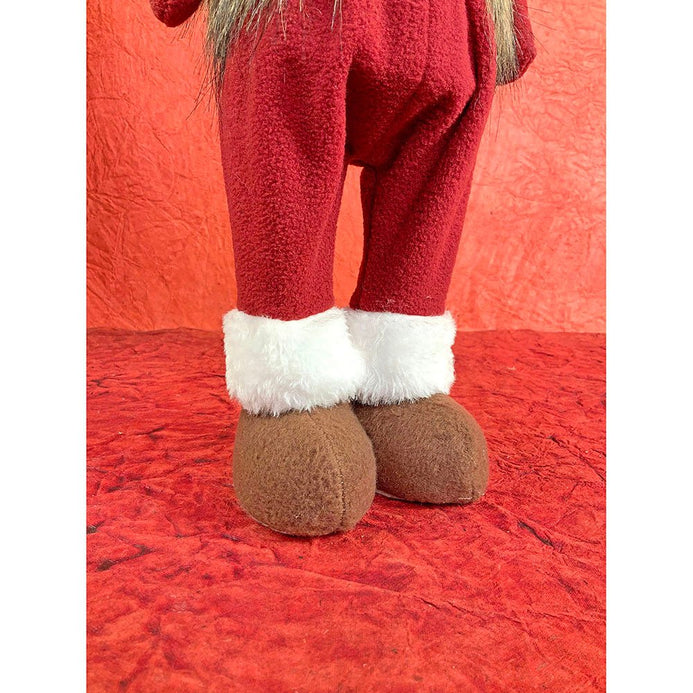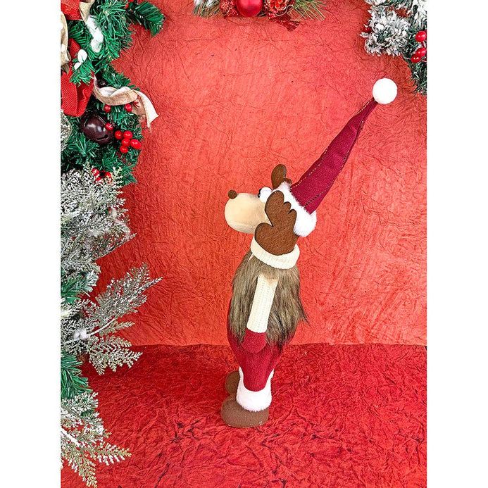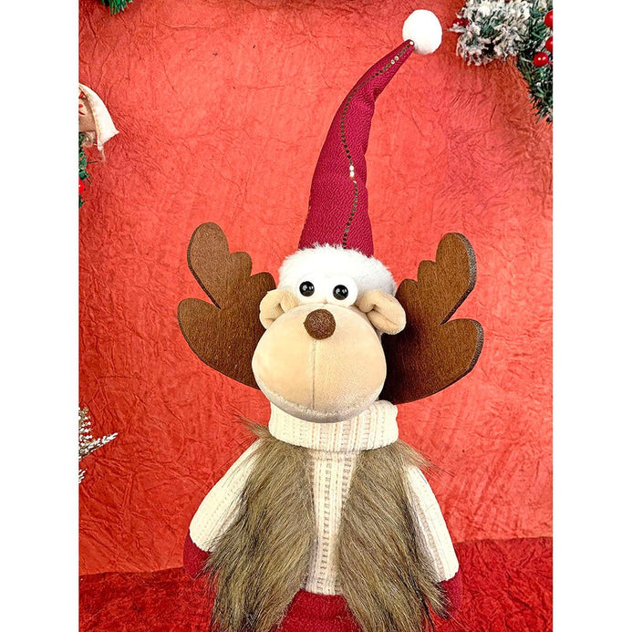 1. Exquisite Design: If you are a christmas enthusiast who loves reindeers and believes in christmas magic and good luck this stunning decor piece is a must have. This tall classily and smartly dressed up Reindeer in Tweed Gold and Cream Polo neck shirt, contrast maroon pants with a super long fur coat looks too adorable. The Gold rimmed Maroon Santa hat adds so much of elegance and charm to the entire piece.