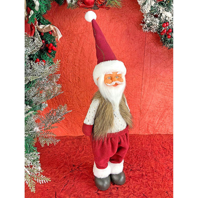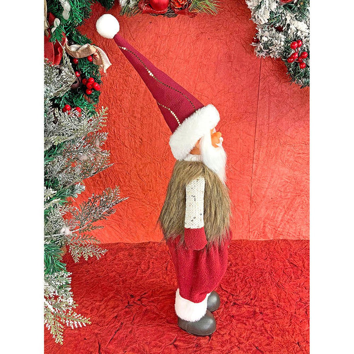 1. Exquisite Design: If you are a christmas enthusiast who is truly for Santas and believes in the santa magic and good luck this piece is a must have. This tall classily dressed up Santa in Tweed Gold and Cream shirt, contrast maroon pants with a super long fur coat looks too adorable. The Gold rimmed Maroon Santa hat adds so much of elegance and charm to the entire piece.