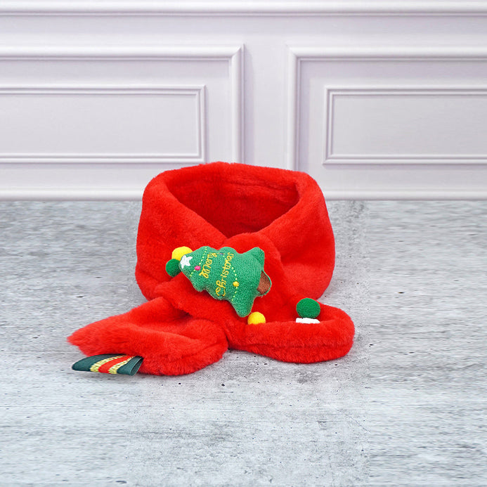 2Pcs White & Red Tree Christmas Themed Winter Cap Beanie With Matching Long Style Neck Muffler | 3-10 Years
