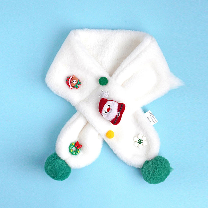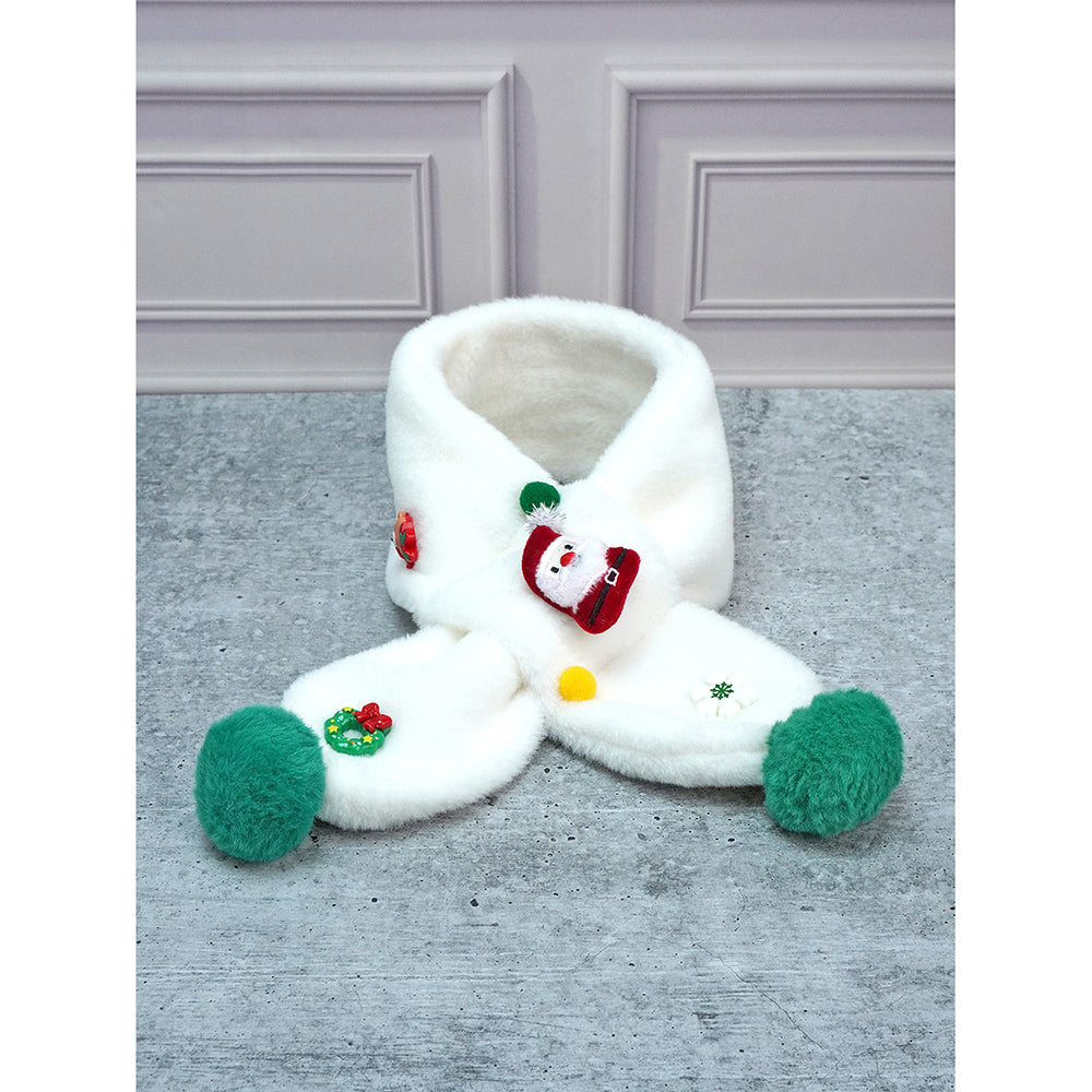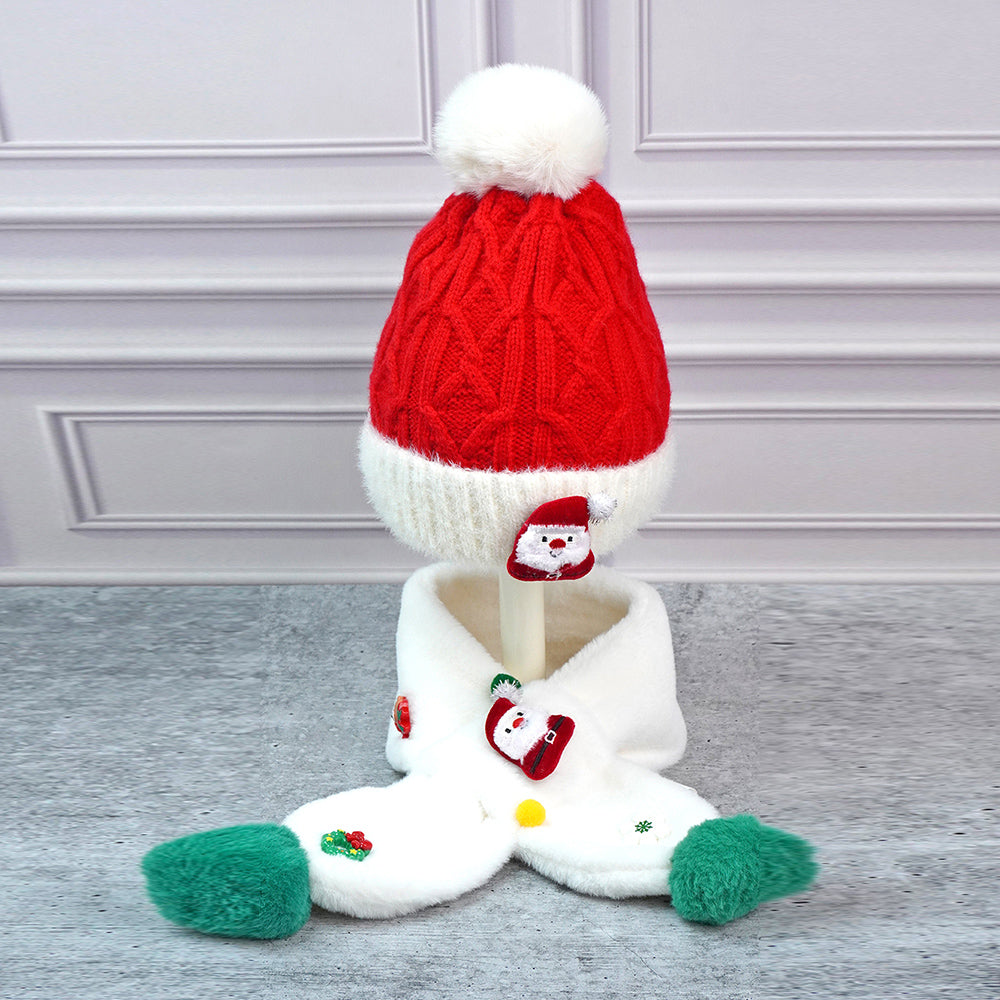 2Pcs White Santa Christmas Themed Winter Cap Beanie With Matching Long Style Neck Muffler | 3-10 Years