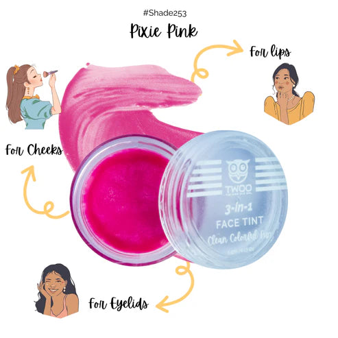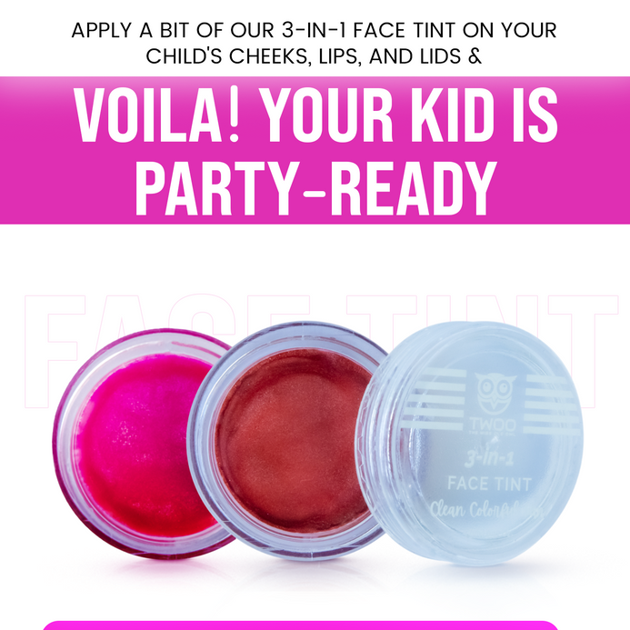Introducing our wonderful 3-in-1 Face Tint! Perfect for your little one, this clean, non-toxic product works as a blush, eyeshadow, and lip balm all in one. Made especially for kids, it's easy to apply and super fun to use. Let your child shine bright and play safely with our gentle, kid-friendly formula. Say hello to endless fun and fabulousness with our 3-in-1 makeup magic!