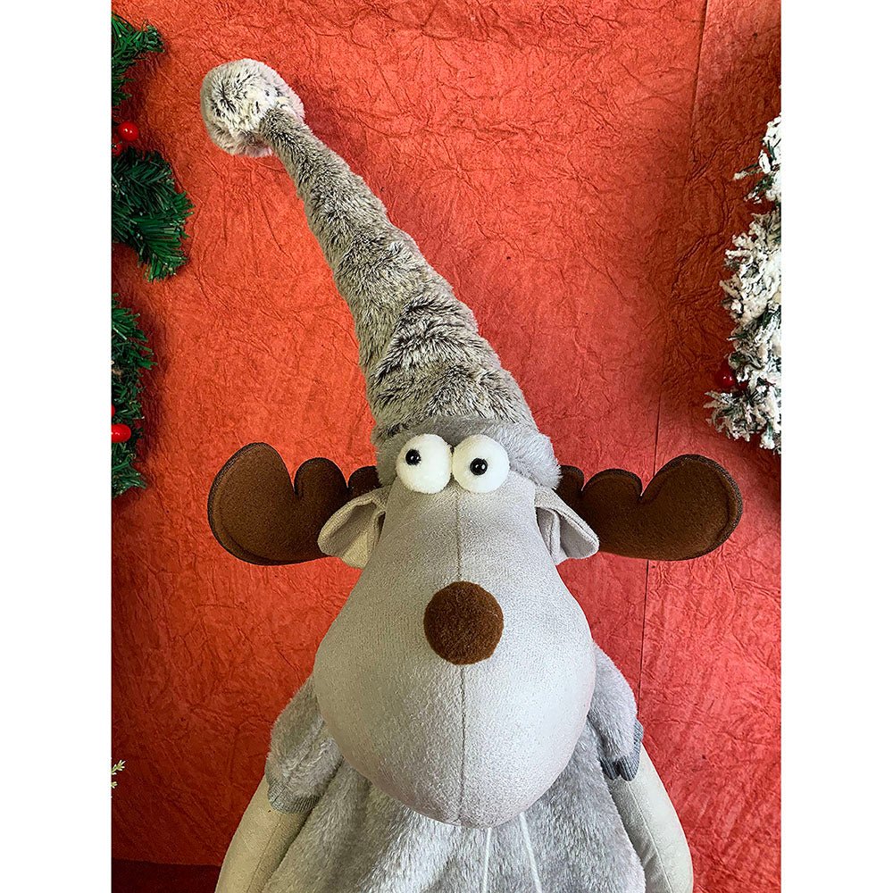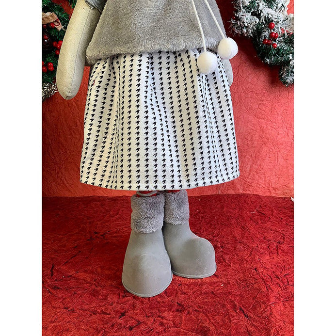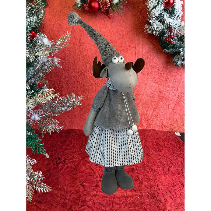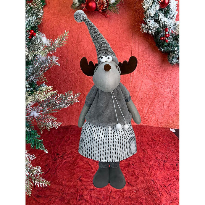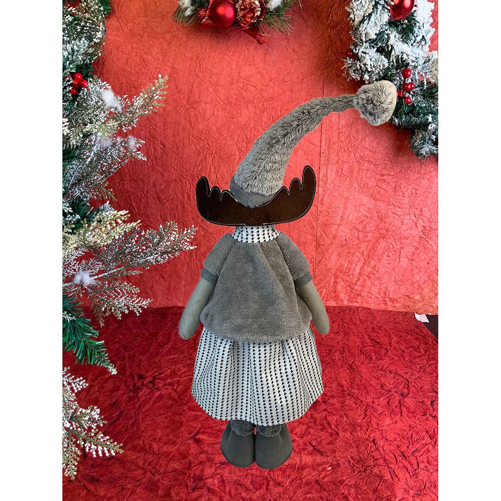 1. Exquisite Design: If you are a christmas enthusiast who is looking at the most unique and attractive Decor to deck up your halls, this piece is a total show stopper. This tall Mrs. Reindeer dressed up in winter clothing which is a beautiful collared checked dress with a puffed furry tshirt ,The long wired Grey santa hat just adds to the charm of this piece.