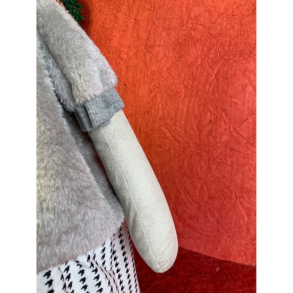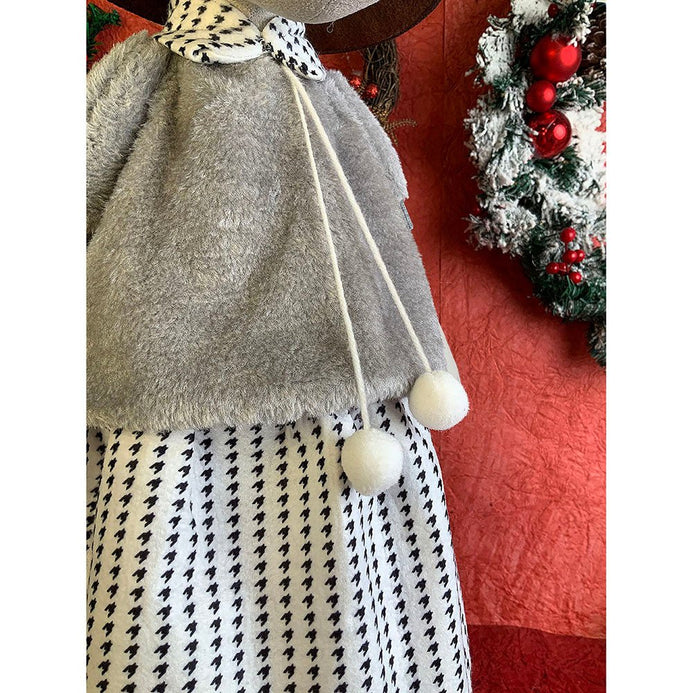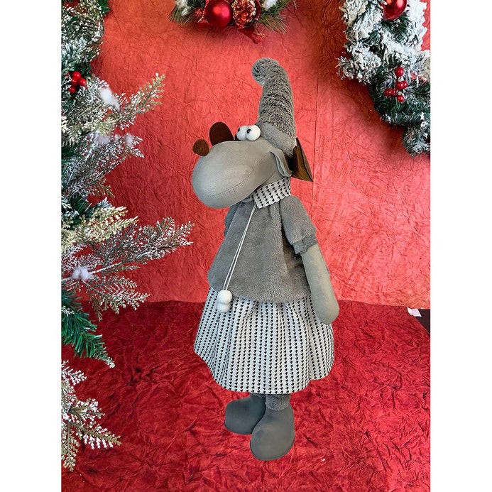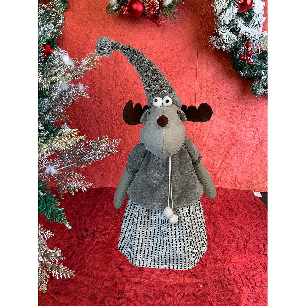 1. Exquisite Design: If you are a christmas enthusiast who is looking at the most unique and attractive Decor to deck up your halls, this piece is a total show stopper. This tall Mrs. Reindeer dressed up in winter clothing which is a beautiful collared checked dress with a puffed furry tshirt ,The long wired Grey santa hat just adds to the charm of this piece.