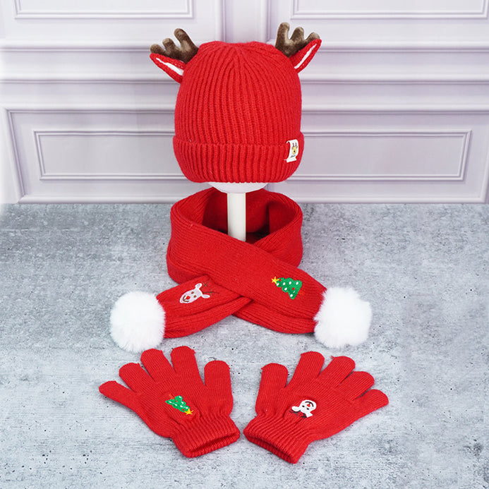 - 3 pcs Matching Winter Cap, Neck Muffler & Gloves : Our cutest Christmas themed complete Winter set comprises of 3 pieces which is a thick knitted winter cap, matching knitted style Gloves and knitted Long neck Muffler. In case it's not too cold and your little one only wants to wear the neck muffler, it could be worn as a single piece too. And in case of extreme winters the set can be worn together for complete warmth and protection.This is specifically designed for extreme warmth in freezing degree temperatures with extra softness protecting the ears, head, hands and neck.