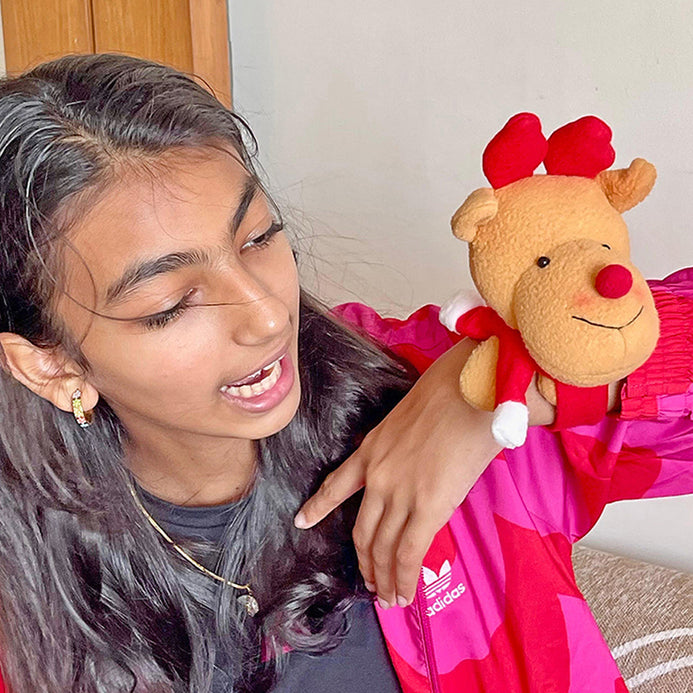 1. 3pcs combo set of Unique Designed Christmas gift sack & Accessories: This exquisite and premium designed 3pcs christmas hairband, wristband and christmas gift sack combo set in the rudolf reindeer theme is a must have for christmas parties or just getting into the christmas vibe. Get into the festive christmas spirit with these adorable christmassy hair acceossory and gift sack. Featuring soft plush 3d reindeer with cute faces, and festive accents, this headband and wristband/ slapband is perfect for holiday parties, family gatherings, or as a fun addition to your Christmas outfit.This beautiful spacious matching christmas sack from Little Surprise Box is just perfect to carry all those little surprise gifts for your loved one.