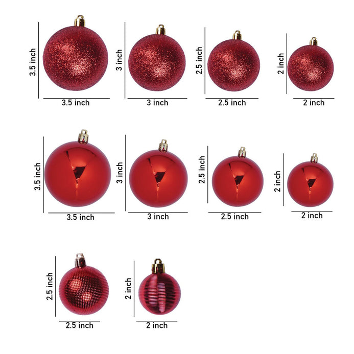 45 Pcs Red Shiny Mix Themed Christmas Balls Tree Hanging