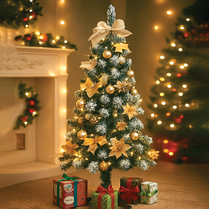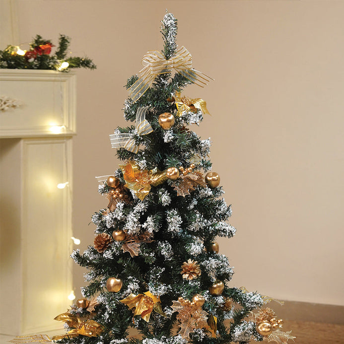 2. Complete Package - This Christmas Tree comes with a beautiful set of tree ornaments which is a good mix of gold Bows, gold tree ornaments, along with Gold cherry fillers.
