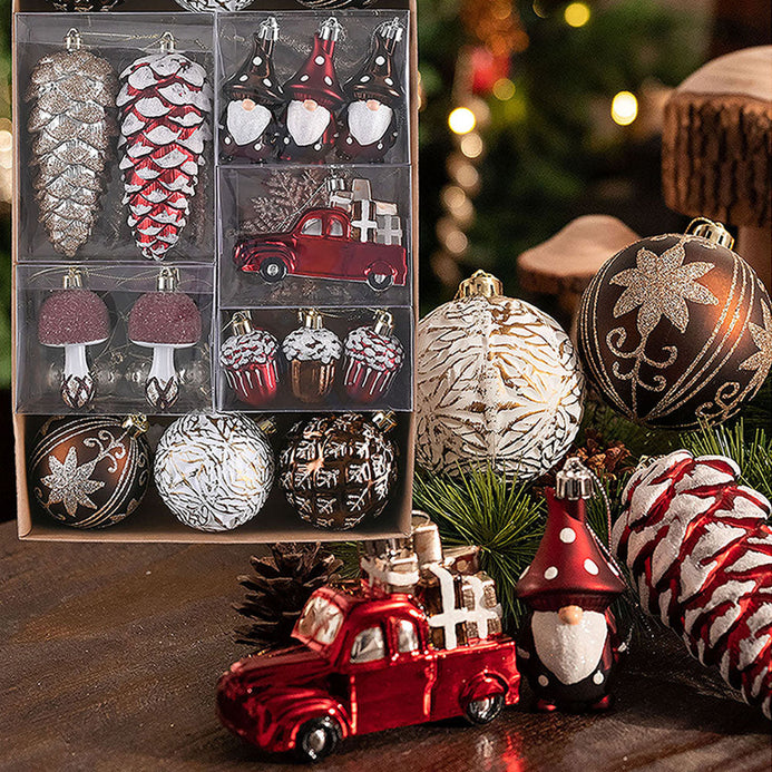 2. Classic Vintage themed Xmas Balls: This box is filled with unique 60 pcs of christmas balls.In this box we offer a good mix of delicately crafted christmas balls.This box is filled with the shimmer classic swirl designs, huge Pinecone shaped ornaments , Campavan shaped ornament, Shimmery Woodland Mushrooms and so much more .The different designs in this set offers a good mix and range of ornaments for your christmas tree.It's difficult to not fall in love with the design of each ball.