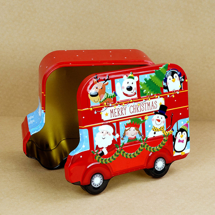 2. Content: This combo includes 1 Red Bus Tin, 1 Elf Hat with Dangling Leg, 1 Santa Wrist Band, 1 Big-size Notebook, 1 Mini Diary, 1 Christmas Pen and 1 Santa Keychain.