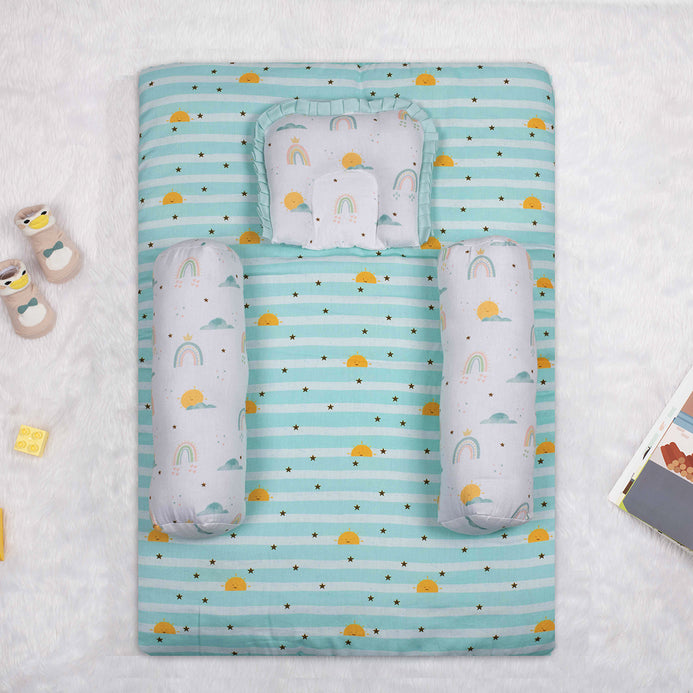 The cozy mattress, made of Organic Cotton fabric, is cushioned to give utmost comfort & relaxation while sleeping. It can be used while co-sleeping at night and napping during the day. All items are machine washable and easy to maintain.
