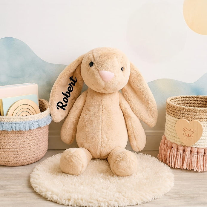 Made from premium plush fabric and stitched with care, it’s ideal for snuggles, nap time, and play. Whether gifted at a baby shower or added to a nursery collection, this bunny is sure to become a child’s first best friend.