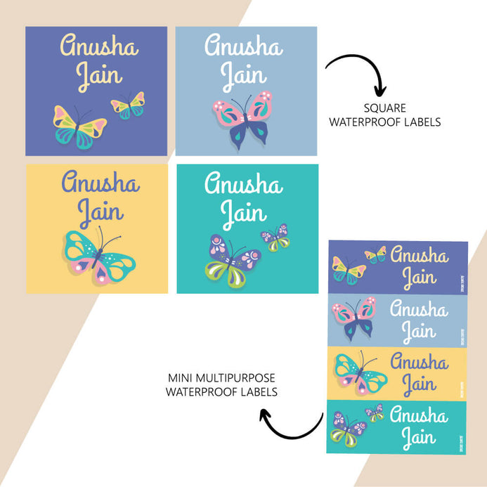 For all your labelling needs from bottles, tiffins to everything big and small we have you covered! The new combo set comes with two sticker sizes, that will have all your kids items labeled and ready for school! And the added bonus they are all WATERPROOF!