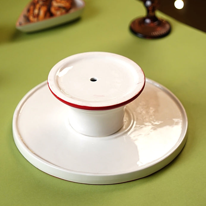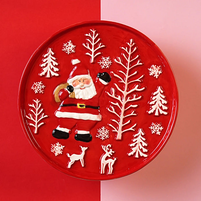 1. Luxury Range, Christmas Cake Stand: A beautifully crafted ceramic cake stand featuring a joyful santa and snowflake design in classic christmas red and white - perfect to elevate your christmas holiday dinner table setting.