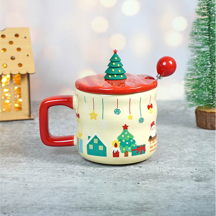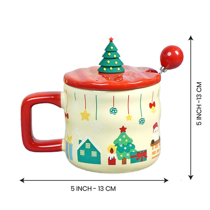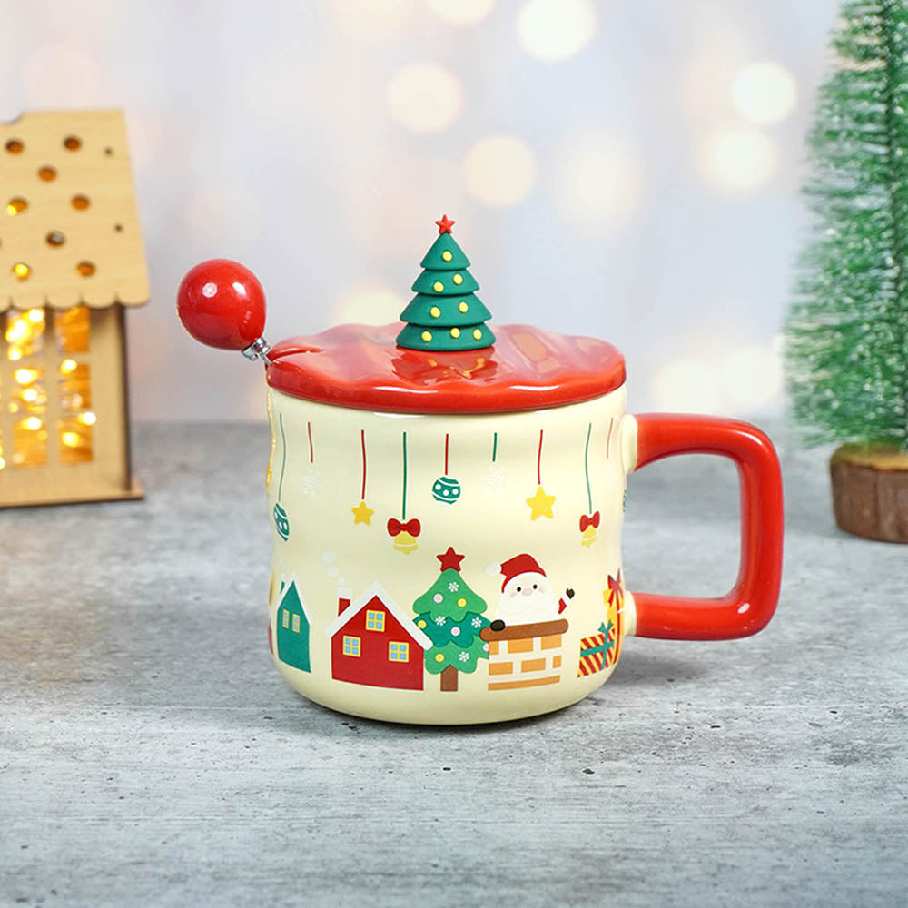 4. Design: The mug comes in an attractive Cream and Red combination with beautiful festive christmas prints. The lid has a stunning 3dsilicone tree which enhances the overall look of the piece. The mug also comes with a stainless steel spoon to stir your hot or cold beverage.