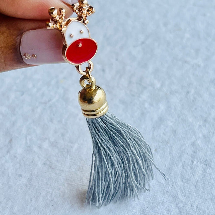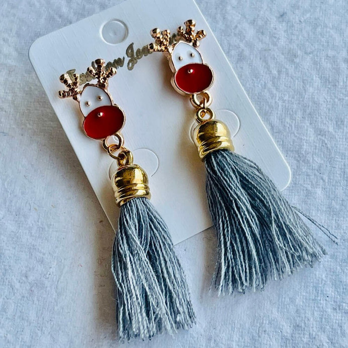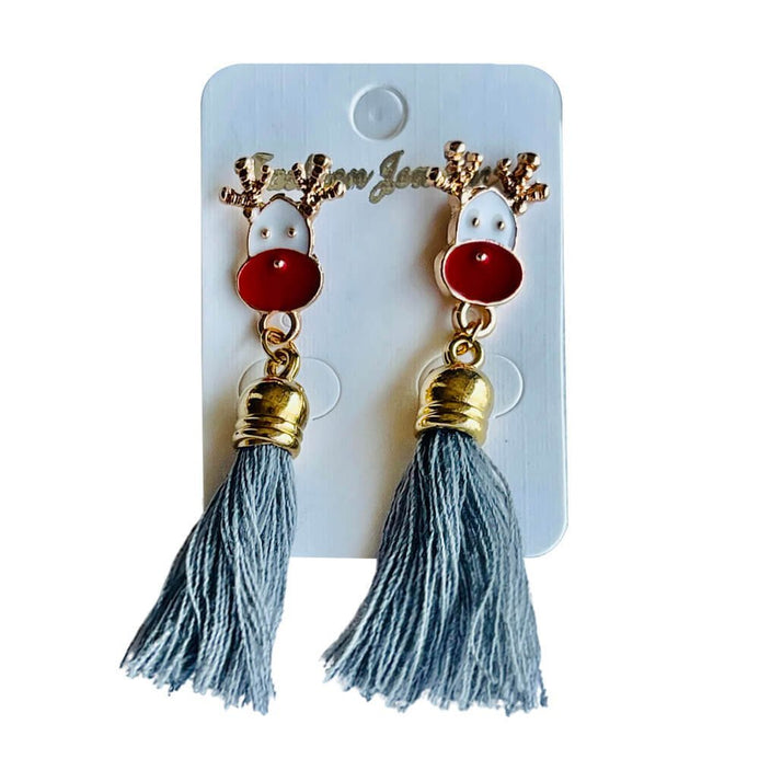Grey Flowy Hanging Reindeer Earrings