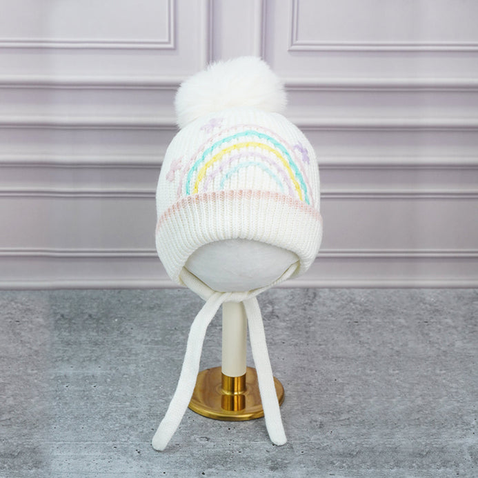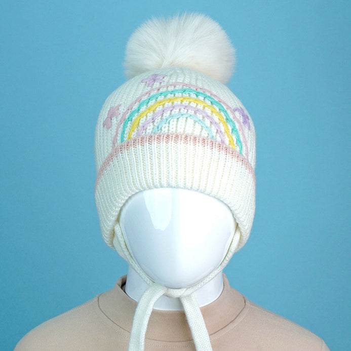 3. Cute Design: The attractive and soothing embroidered pastel rainbow makes the entire beanie cap so attractivea and cute. The big size pompom on the top adds to the cuteness quotient.