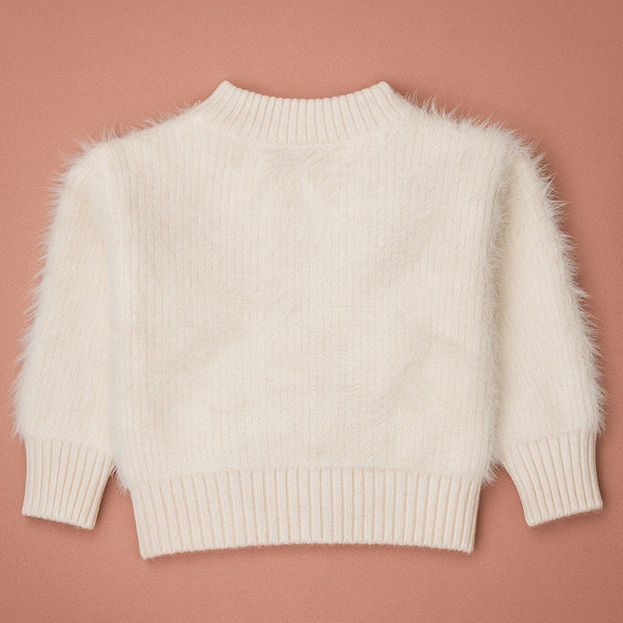 1. Design: This elegant winter sweater is perfect for little ones who love a soft, cosy, and adorable look. The warm cream cardigan features cute 3D flower on the front and luxurious faux-fur texture on the sleeves, front, and inner side. The mix of textures gives it a premium, winter-wonderland charm, making your child look irresistibly cute during the colder months.
